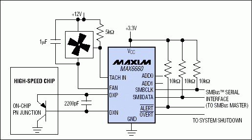 用晶體管,三極管以PWM波形來驅動風扇的電路圖介紹這種IC的例子有兩個,一個是直流驅動,另一個是PWM驅動,如圖1和2所示。圖1中的IC遠程檢測